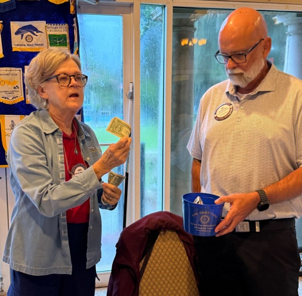 Our club has blue CART Fund buckets on each table at every club meeting. Members may choose to donate to the CART Fund at any time, though contributions are most often made during Happy Dollars.